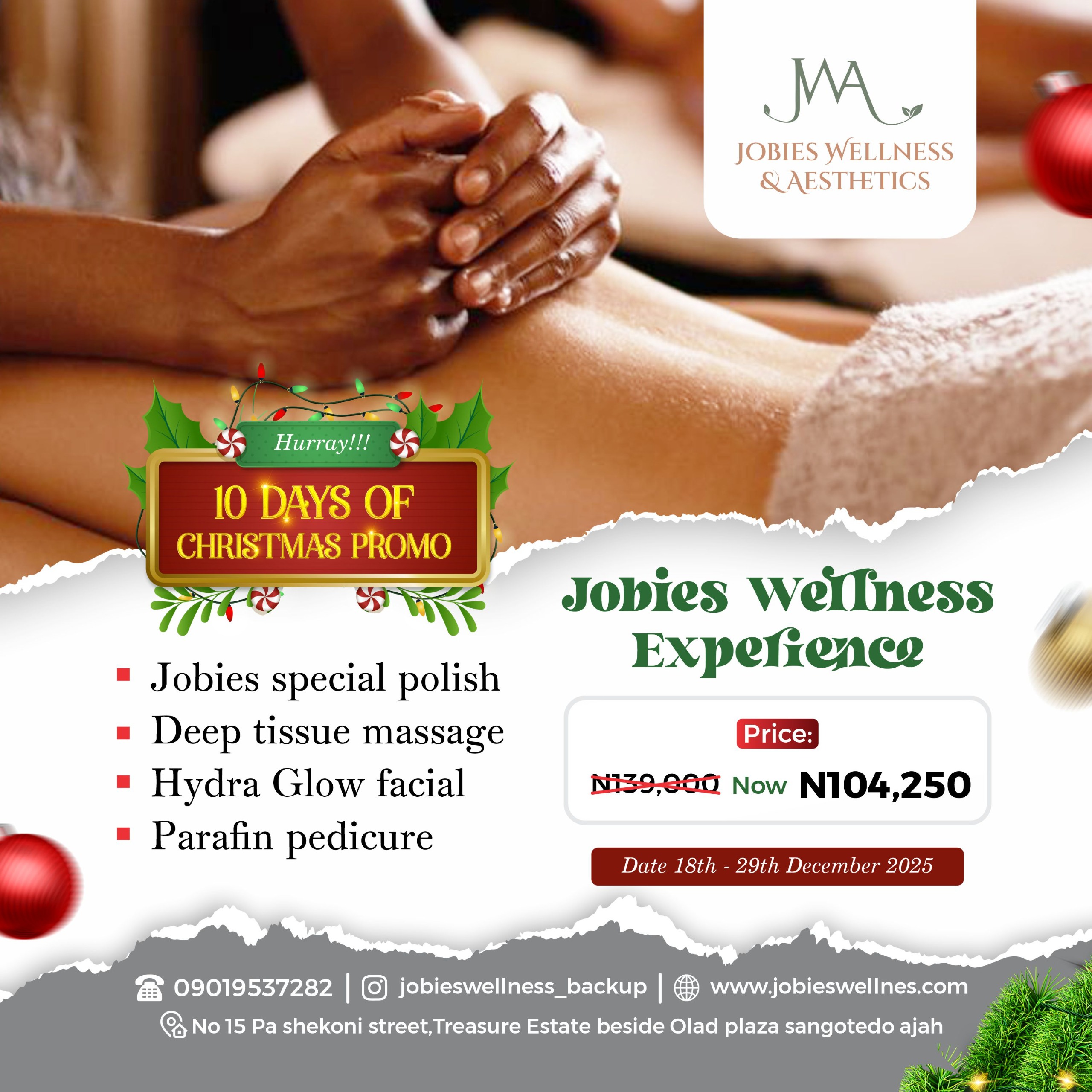 Jobies Wellness & Aesthetic is a professional wellness spa and aesthetic clinic in Ajah, Lagos, offering result-driven treatments for skin health, body care, relaxation, and overall well-being.